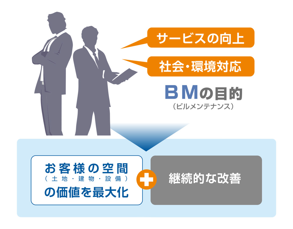 当社は、総合ビル管理業を通じて、建物を常に最高の状態で維持機能させ、快適な空間の創造とQOL(生活の質)向上を目指します。