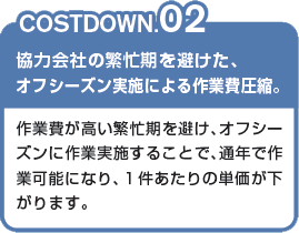 近隣の現場と作業スケジュールを組み合わせ、効率化することで、コストダウン |