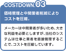 ワンストップサービスの未来創建では、4つのコストダウンを提唱し、実現しています。