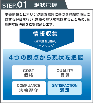 当社は、ファシリティコスト=投資と捉え、その効果の最大化を目的としたご提案を実行し、施設の資産価値向上を目指します。