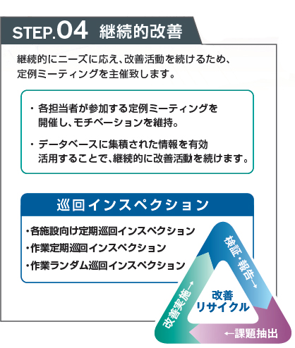 様々な問題点を解消する「コンサルステップ」で改善実行。